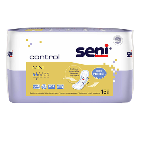 Le Seni Control Mini est une protection anatomique respirante qui convient aussi bien aux hommes qu'aux femmes. En raison de sa respirabilité et de sa coupe anatomique, elle offre un confort de port particulier, qui permet de profiter activement de la vie. Les barrières anti-fuite latérales offrent une protection fiable. De plus, les protège-slips, ou protections anatomiques, ont un super-absorbeur antibactérien qui empêche les odeurs désagréables. La manipulation facile permet une fixation aisée dans les sous-vêtements.