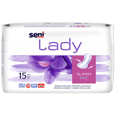 Respirantes, avec leur forme anatomique, les protections Seni Lady Super sont une solution idéale pour les femmes souffrant de fuites urinaires modérées. Les protections Seni Lady Super garantissent :