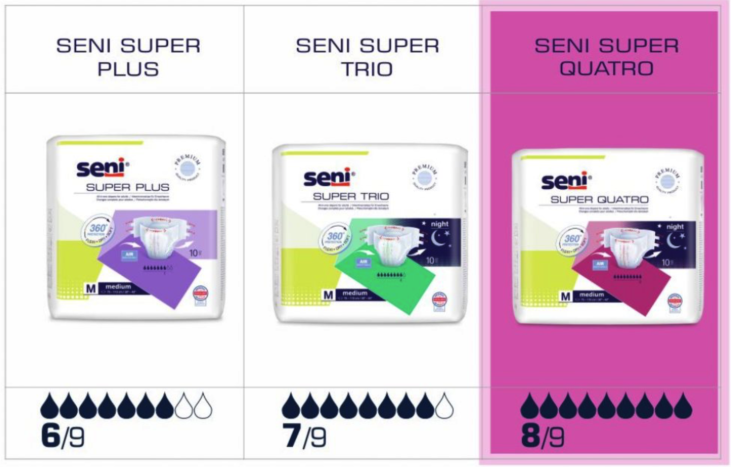 Changes complets respirants Seni Super Plus pour les personnes souffrant d'incontinence urinaire sévère et d'incontinence fécale :