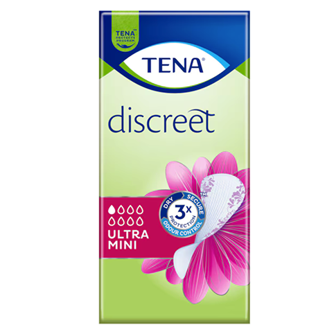 Pour les petites fuites urinaires, le protège-slip absorbant TENA Discreet Ultra Mini est ultra fin mais super absorbant pour une protection discrète et sûre. De la même taille qu’un protège-slip classique, mais beaucoup plus absorbant, grâce à la technologie microPROTEX™ qui capture les odeurs et l’humidité instantanément. Le protège-slip fin et sûr pour les fuites urinaires prévient les fuites et les odeurs instantanément, vous procurant une sensation de fraîcheur toute la journée.