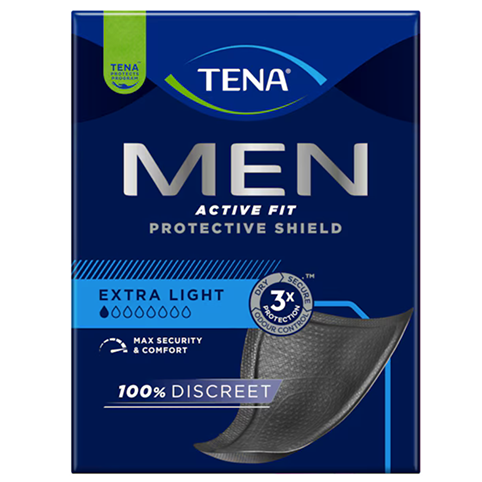 Protection TENA Men Active Fit contre les fuites légères, les odeurs et l’humidité. Avec à peine 3 mm d’épaisseur, ces protections contre l’incontinence sont confortables et discrètes. Elles absorbent les fuites urinaires très légères et vous garantissent une fraîcheur en toute confiance. Elles ont une forme triangulaire douce. Elles ont été conçues pour épouser le corps des hommes, avec une zone d’absorption sécurisée pour capturer les fuites. Ces protections sont emballées individuellement. Elles restent en place grâce à une bande adhésive. Une fois positionnées sur le sous-vêtement, vous oublierez leur présence pour vos adonner à vos activités de manière optimale, que ce soit à la salle de sport, au bureau ou lors de vos sorties.